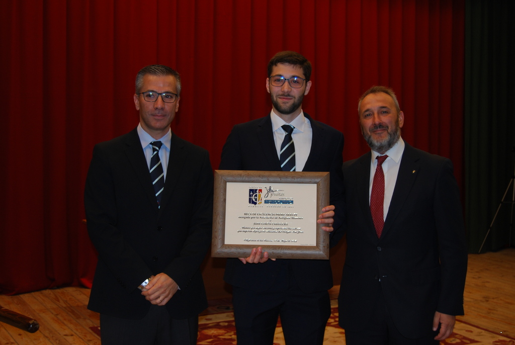 Y además se hizo entrega de la Beca Padre Arrupe otorgada por la Asociación de Antiguos Alumnos al alumno/a de 2º de Bachillerato que mejor encarne los valores ignacianos, nominado por sus compañeros y ratificado por la comisión creada a tal efecto. Felicidades al alumno Juan García Caballero que la ha recibido este año.