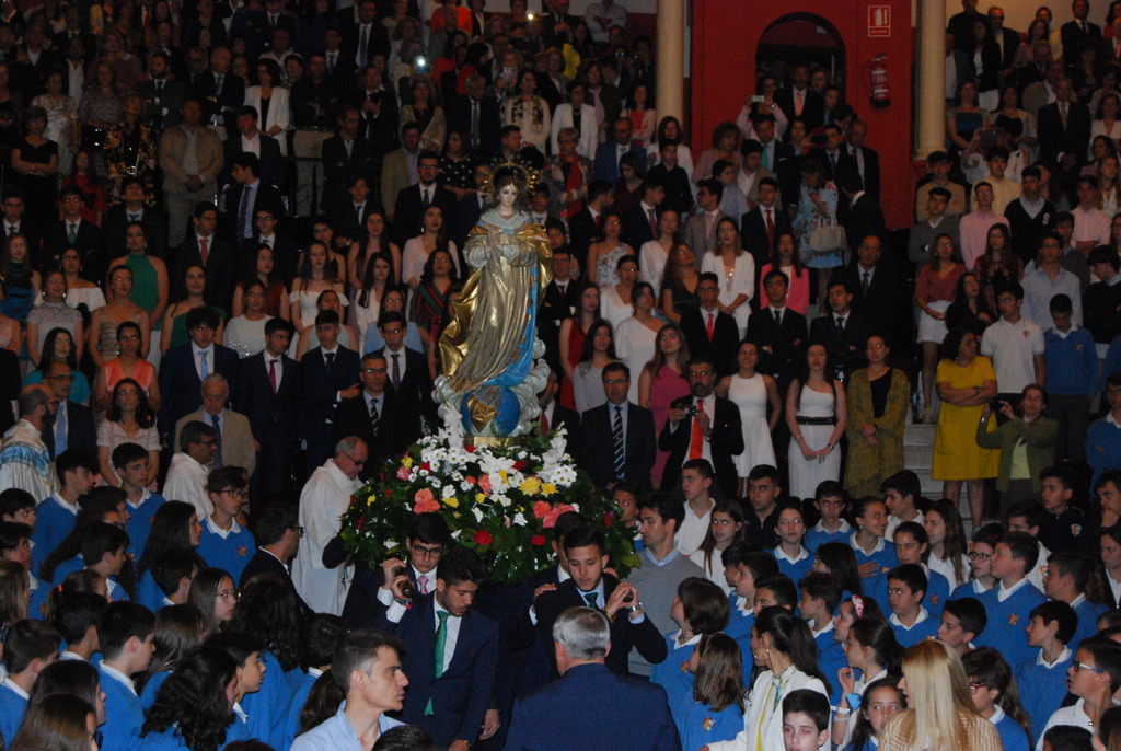La procesión de la Virgen del Colegio desde la Capilla hasta los jardines, portada por distintos grupos de alumnos de 2º de Bachillerato, el canto de la Salve con todos los alumnos, docentes, personal y familias junto a la fachada del Colegio, la llegada de la Virgen al salón de actos convertido en templo donde celebrar la Eucaristía en comunidad y en un día tan especial… todos y cada uno de los momentos vividos esta mañana tenían ese aroma del Colegio más familiar. Una nueva despedida de Bachillerato nos acerca a un nuevo final de curso, que, como es habitual, será especialmente marcado para quienes dejan de ser alumnos del Colegio y comienzan una nueva etapa en sus vidas.